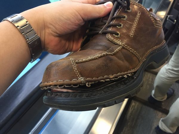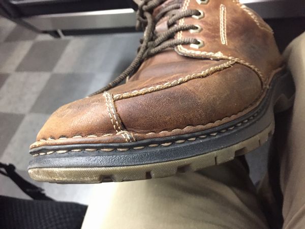 いつのまにか右の靴先がブロークンです。