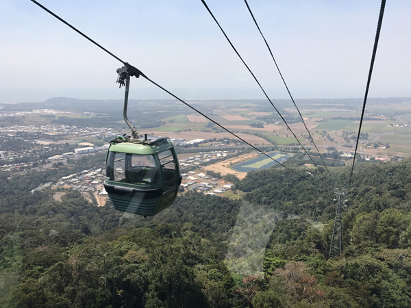 4人づつ(6人乗りだけど)に分かれてゴンドラに乗車して、いざキュランダに出発!。