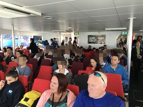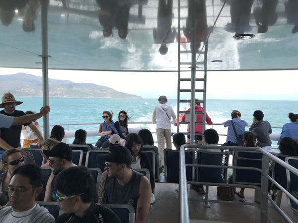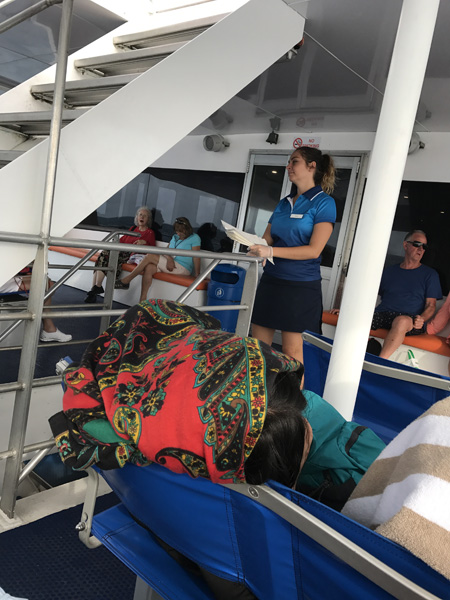 約45分でグリーン島に到着。風が強くて、船酔いを心配していましたが、全員無事到着しました。船には船酔いしてゲロを吐く人のために航行中ずっとお姉さんが立っていました。大変だ~~。