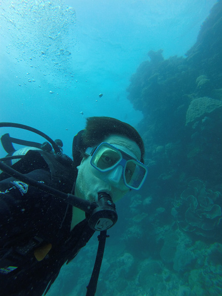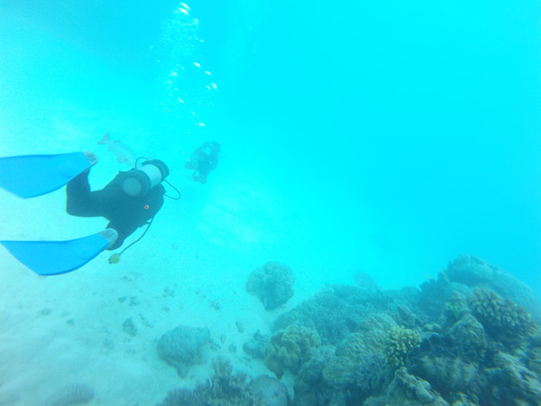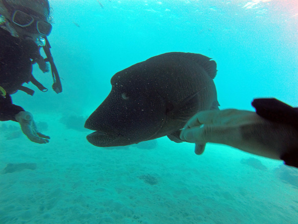 ライセンスは持っているものの、かれこれ7年ほど潜ってないので、不安でしたが、素晴らしいサンゴ礁と色とりどりの魚の群れ、ナポレオンフィッシュも餌を欲しがってついてきます。