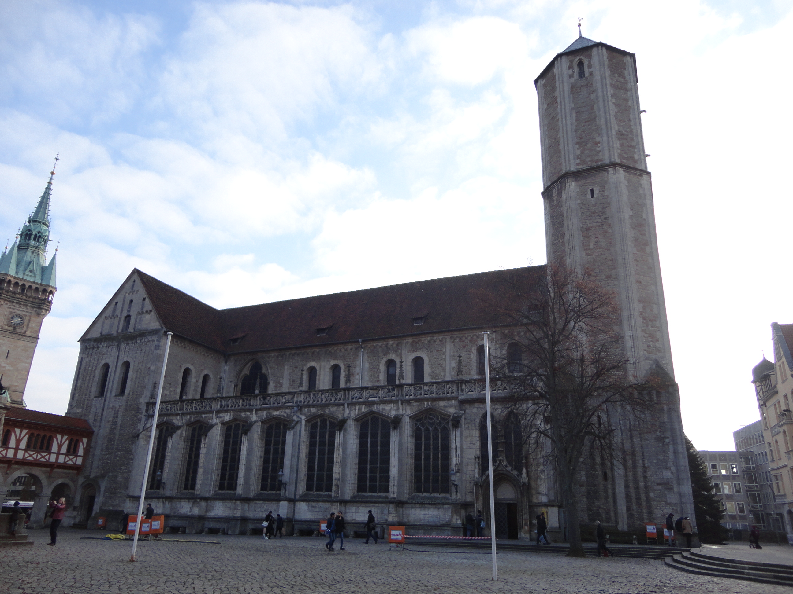 旧市街の入り口までは、20分余り。今日は土曜ということもあってか、旧市街の人出は多い。市庁舎の前に人だかりがしているが、市庁舎内での結婚式が終わるのを待っている人たちのよう。他の町でもそうだったが、結婚式は教会か市庁舎で挙げるようで、ドイツでは結婚式場の出番はないようだ。