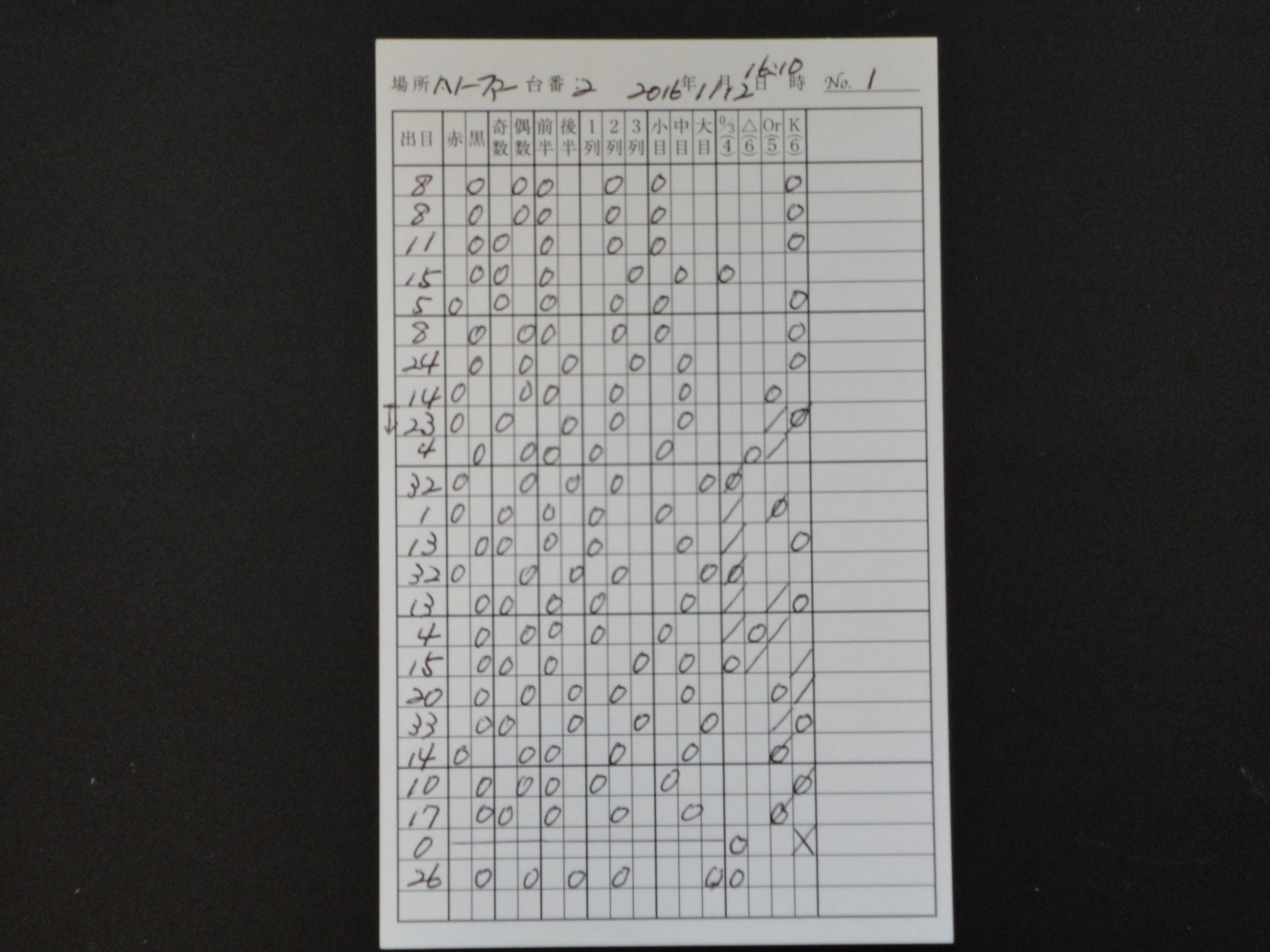 台の脇を通った時に、0の次の出目を表示盤で見ると、26だった。これは、続けていれば間違いなく、0/3と26ツボツボで取れたはず。