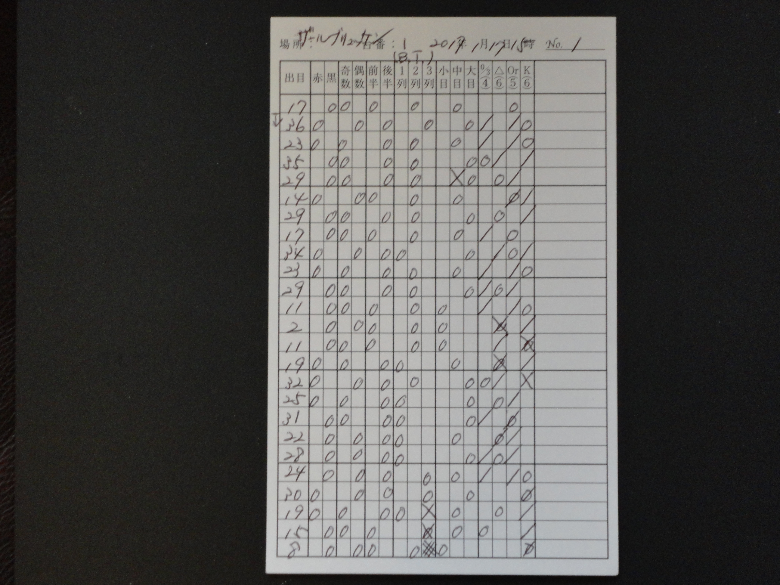 いつもは、1の後のOrに賭ける時には、隣の33を押さえることにしているのだが、今回は押さえなかった。これも、ツキを失ったことの現われか?