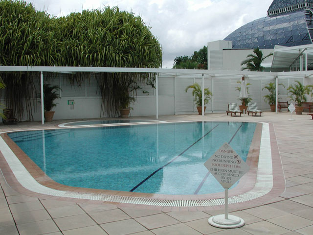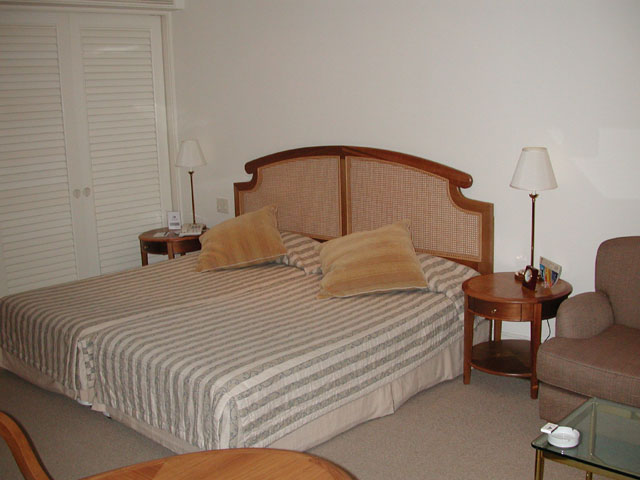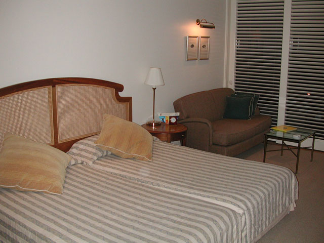 ケアンズでは5ツ星ホテルです。オールスイートを謳っているので部屋数は130室弱のこじんまりとしたホテルです。今回はデラックスタイプの部屋でしたが、オールスイートと言われるとちょっと疑問はありますが、普通のホテルと比較すれば十分な広さと施設です。A$125で泊れるわけですから、かなりお得だと思われます。