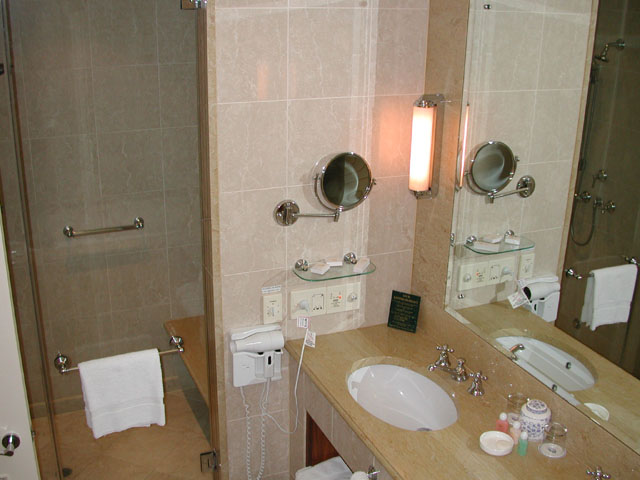 バスタブとシャワーは別れています。バスタブはジェットバスになっていて、シャワールームにはタイマー付きのミストサウナ機能がついています。また、トイレも別になっています。カジノホテルには珍しくバルコニーがついていますので、海を眺めながらリゾート気分も味わうことができます。デラックスとスーペリアは2ベッドですが、それ以外の部屋タイプだとすべて1ベッドになるそうです。インターコネクトのタイプの部屋もあり、エキストラベッドのリクエストもO.K.だそうです。
