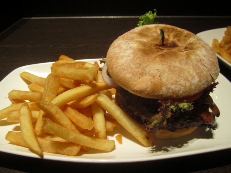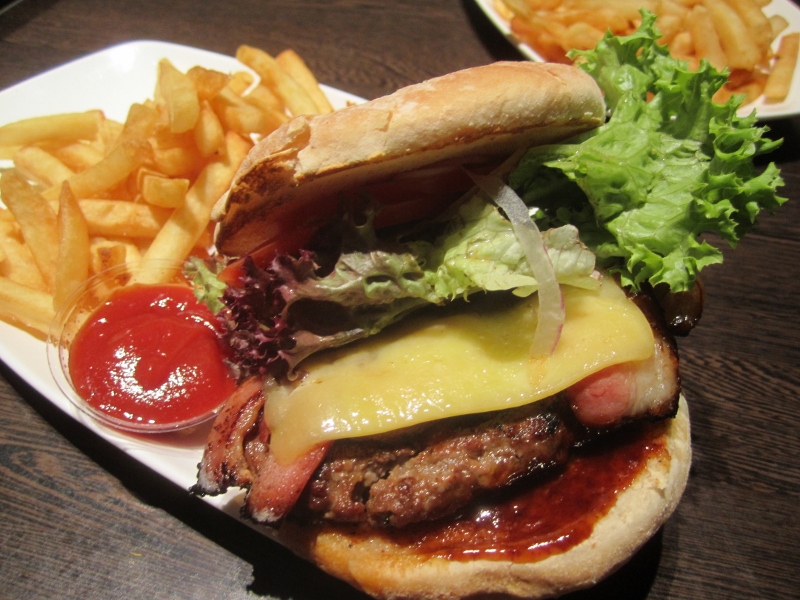 1階の奥にある24時間のお店でハンバーガーをいただきます。