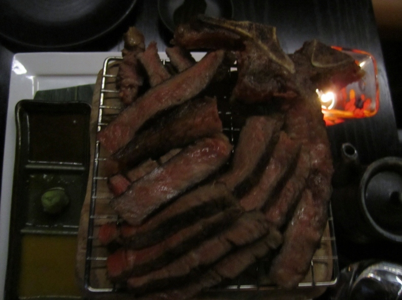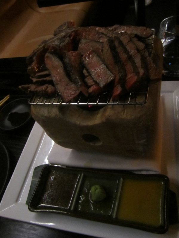 隣のお兄さんのテーブルに、火鉢ステーキ。