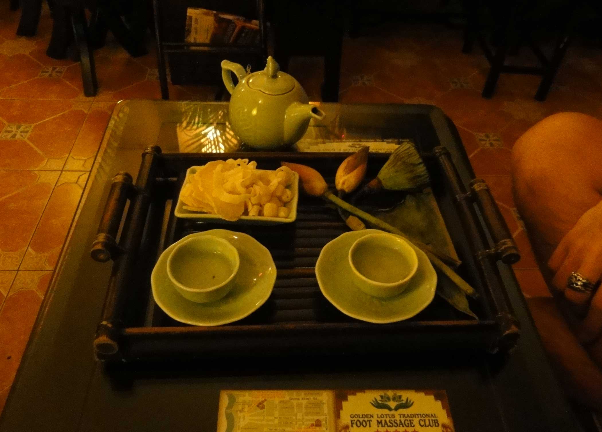 マッサージの前後にはソファーでお茶とドライフルーツが楽しめます。