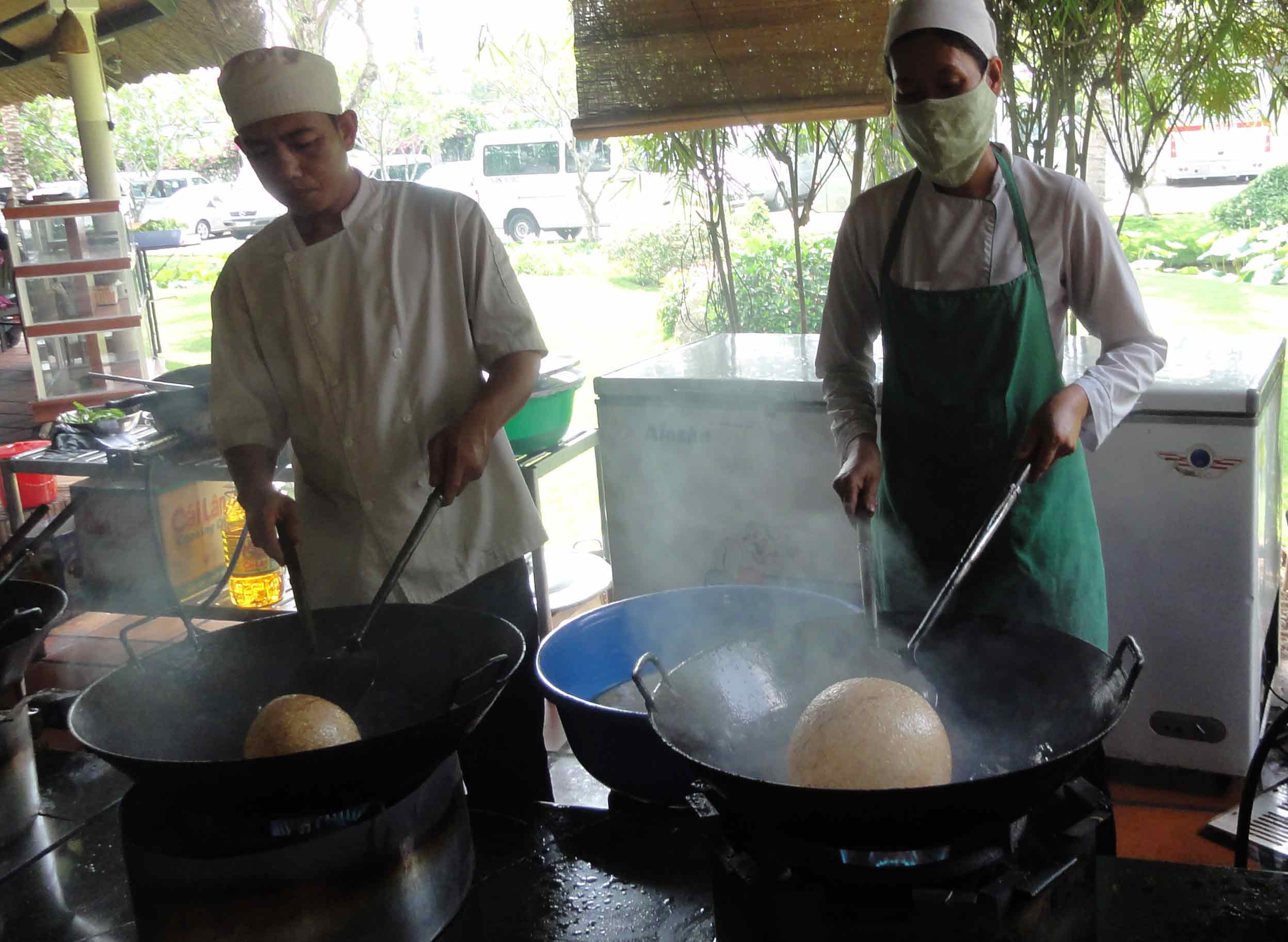 メコン川の帰りに食べた巨大な揚げ餅は美味しかったです。