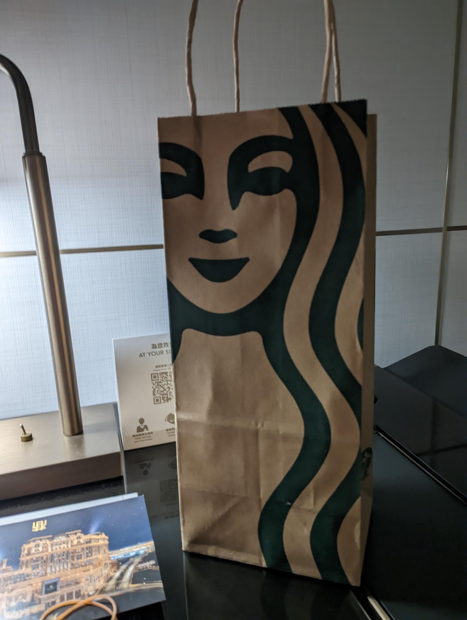 マカオのスターバックスには、今回、マカオでしか買えないトートバッグがありました。大聖堂やトランプが絵柄として描かれていて、180パタカと安くはないのですが、結構いいですよ。