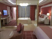 ジャグジーの大きいのが噴水の見える窓に面しています。