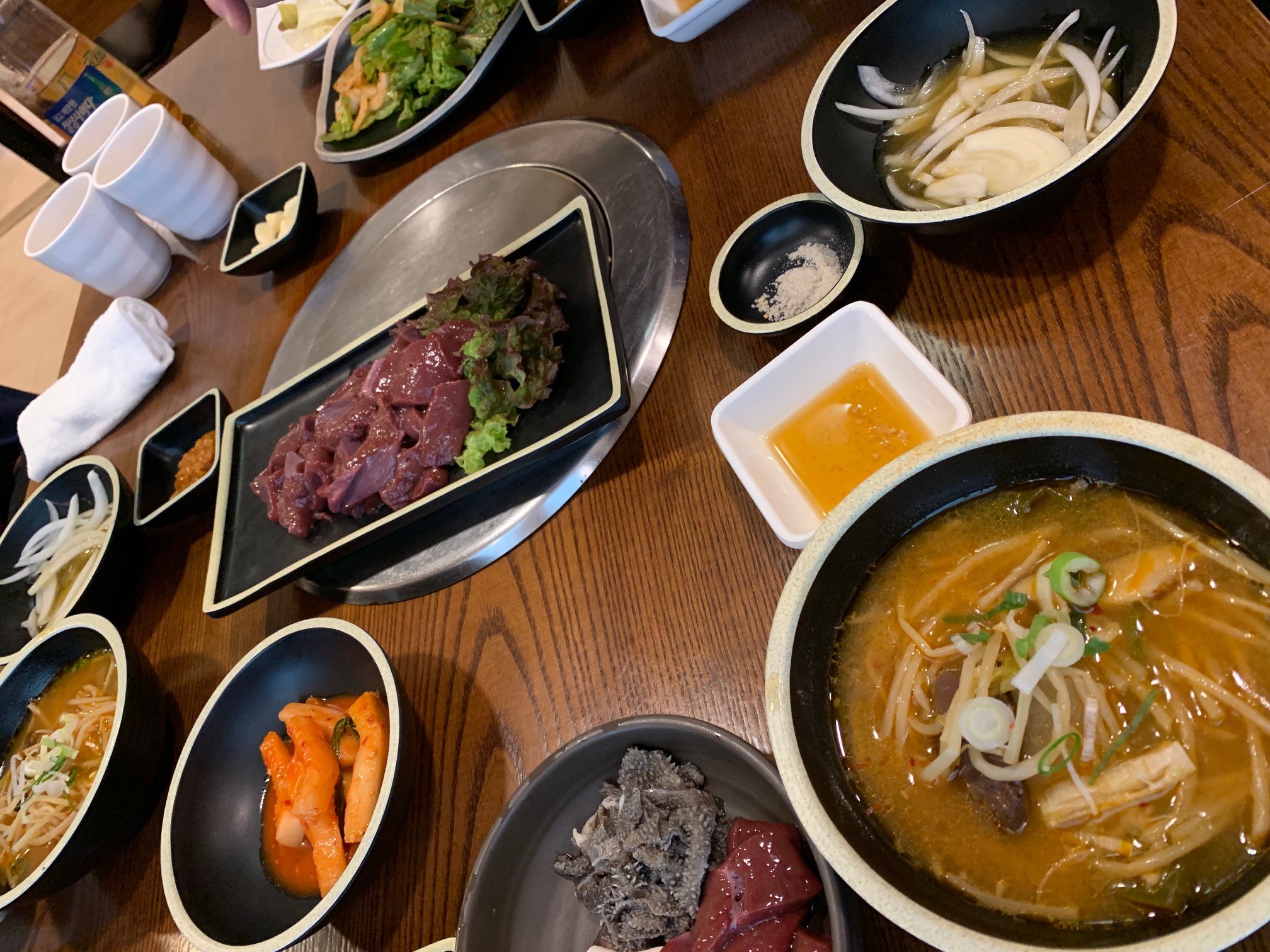 そんなこんなしている間に、運ばれてきた時の何分の一かの大きさになっているホルモン食べるとこれが美味い。隣にも美味い!!っていうと嬉しそう。その後にはさっき私らが頼んだ鍋と焼き飯を頼んだらいい。。と(言葉は理解できなかったがそんな感じ)アドバイス。