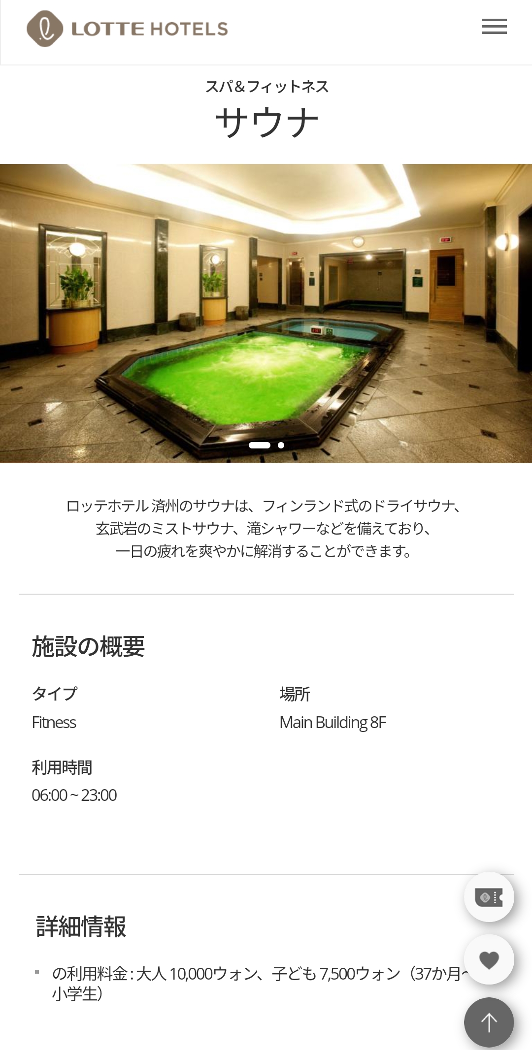 フィットネスクラブ内の1設備としてサウナがあるため、フィットネスクラブの利用となりますが、料金は10,000KRWで安かったです。