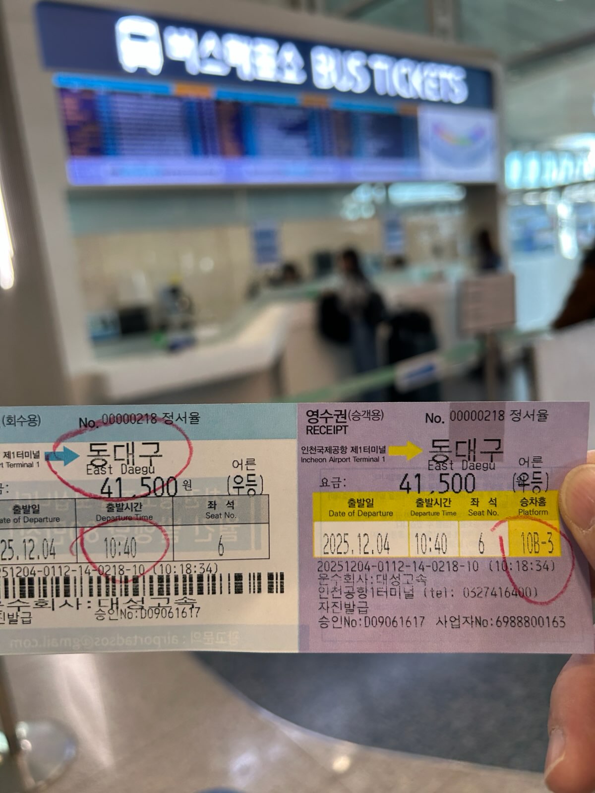 仁川空港から高速バスで東大邱に行きます。所要約4時間(途中PAトイレ休憩あり)の長旅ですが、天候も良くとても爽快でした。