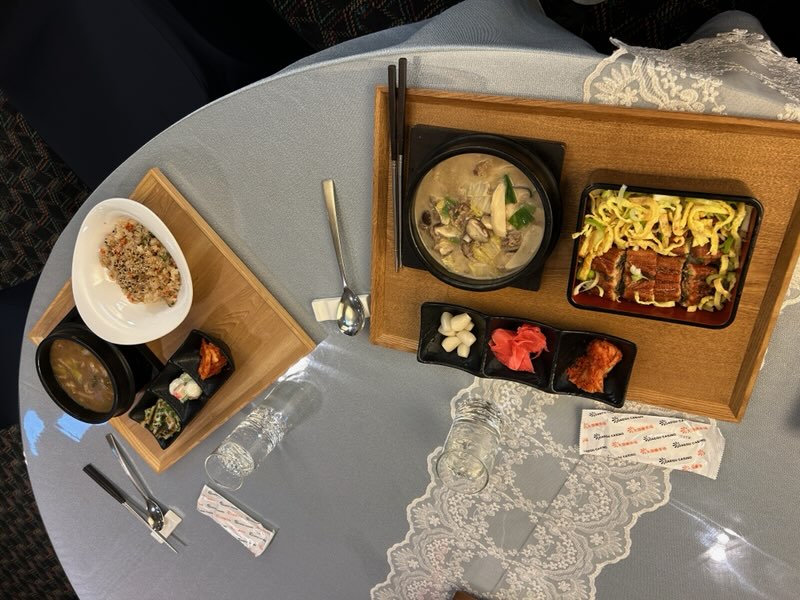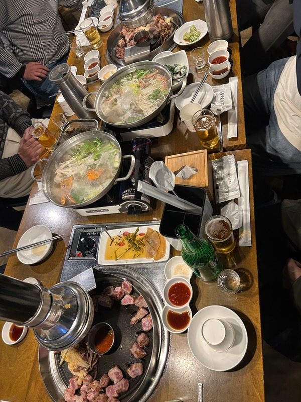 2人揃ってプラスになったところでこの日は終了です。東大邱駅周辺のスープ定食屋に行きました。
