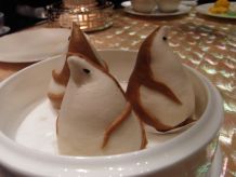珈琲栗茸企鹅包。ペンギンの形の点心です。コーヒー味で楽しい。点心師が楽しんで作っている様子が目に浮かびます。